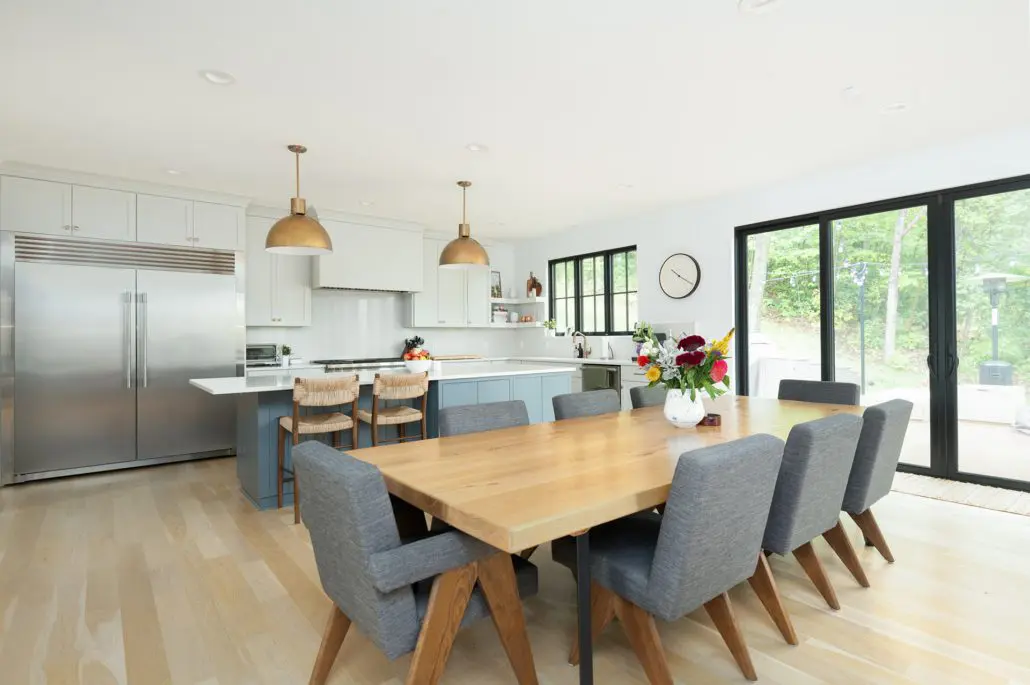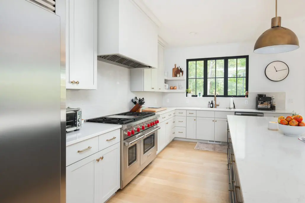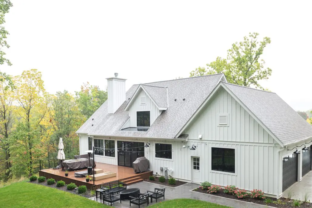 The original inspiration for this home was adapted for the challenging wooded hillside location, resulting in a home thoughtfully positioned in a breathtaking setting that others would not attempt. The modifications to the original design resulted in changes to the overall flow and an open and inviting living space allowing the owners to appreciate the views of the natural surroundings. The creative layout includes a first-floor primary suite, a true pocket office and a unique jack-and-jill bathroom setup upstairs, maximizing space and functionality. The owner’s appreciation for clean lines and European style can be seen in details such as the fireplace, the stooled black windows, stairs, and cabinetry.